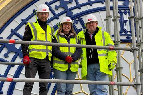 With the original colour scheme identified, a team of specialist stained glass experts from South London worked to find a perfect match for the Prussian blue and gold on the dials and clock hands. All 1,296 pieces of glass in the clock dials were then replaced by hand – with each person working on the project given the opportunity to install one of the precious mouth-blown segments.