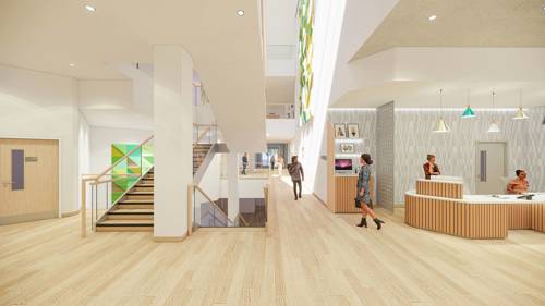 Douglas Bennet House Internal CGIWith careful design consideration by our architect the IBI Group, DBH will have safe and secure surroundings built into the bedroom design, with access to outside spaces on all floors. The design includes anti-ligature fixtures and fittings, providing staff a better working environment to treat those in their care. The project team have a target of BREEAM (Building Research Establishment Environmental Assessment Method) Excellent to meet.