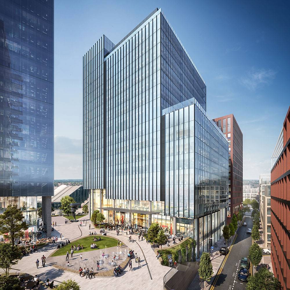 A spectacular 17-storey fully glazed tower with a welcoming, double height reception area will provide access to 26,000 sqm of best-in-class work and flex space over 15 floors. The building will also provide ground floor retail space and two layers of basement parking, whilst a new public square and a link bridge will create level access from the train station through to the town centre.
