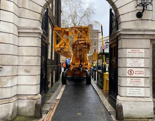 Tower crane entering via Tudor Street Gate